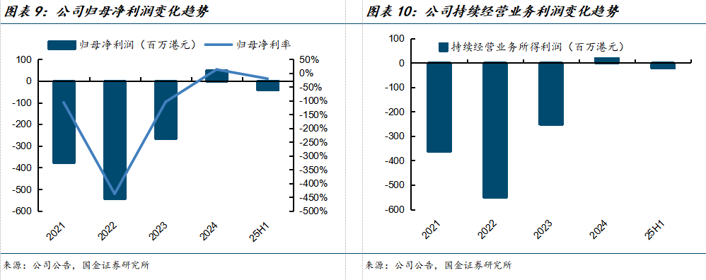 公司于2024年实现扭亏为盈,归母净利润达到0.48亿港元,持续经营业务所得利润达到0.55亿港元。25H1,公司持续经营业务亏损0.2亿港元,主要系公司全球扩张计划导致人数以及经营开支增加。