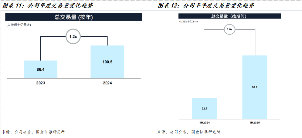 2024年,公司实现交易量1005亿港元,yoy+16%;25H1,公司实现交易量682亿港元,yoy+200%,主要由场外交易业务以及OSL Pay带动。截至25H1末,公司托管资产规模达到57亿港元,为去年同期的1.5倍。