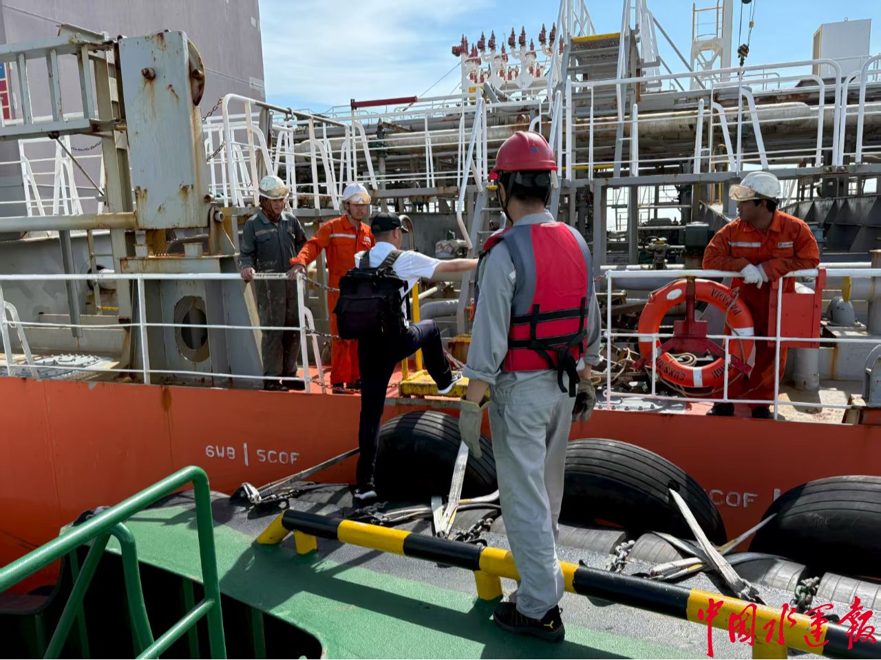 近日,在杭州湾北侧上海金山1号引航员登离轮水域,来自嘉兴港的引航员登上巴拿马籍散装化学品船“RABIGH SUNSHINE”轮,历时1小时20分钟,将该轮直航引靠至嘉兴华辰码头,较之前节省了2个多小时,标志着浙沪两地引航资源共享共用新机制正式落地见效,为推动长三角一体化高质量发展增添“硬核支持”。