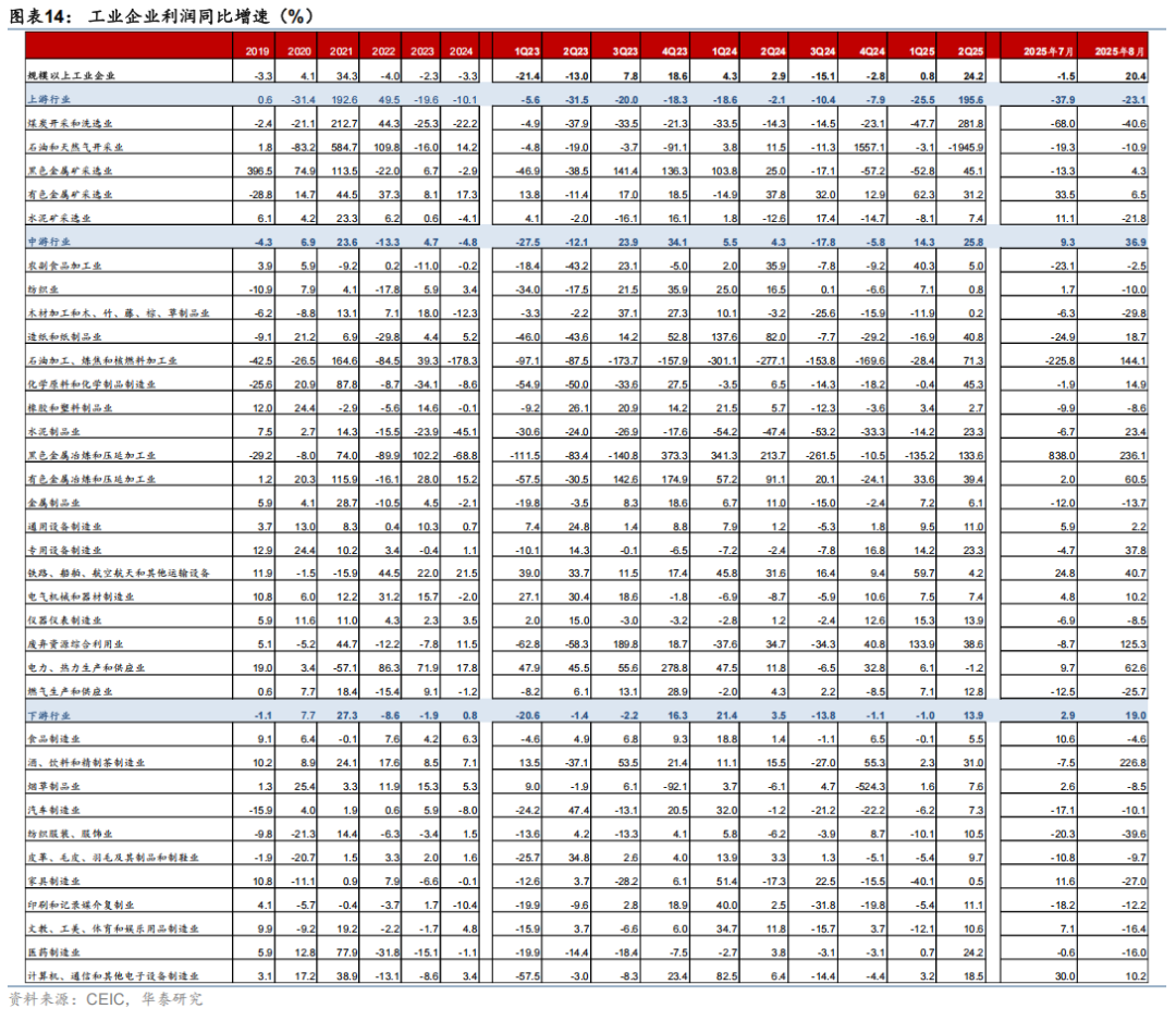 本文摘自2025年9月27日发布的《低基数推动 8 月工企利润同比回升》