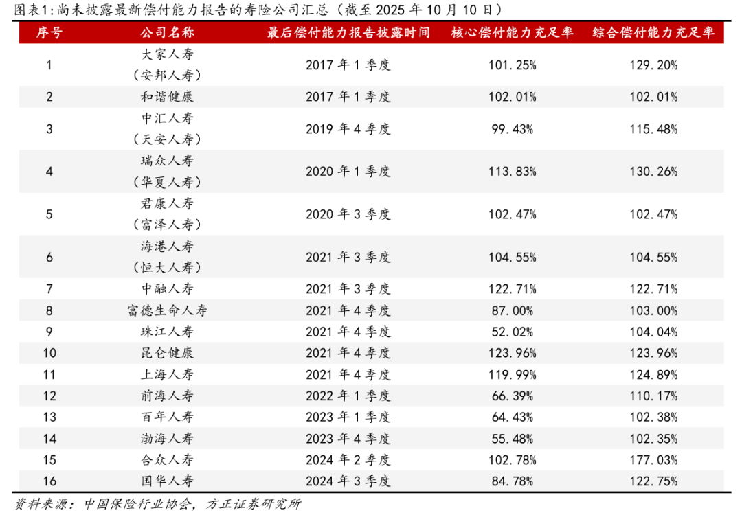 “15天安财险债”兑付违约或是市场化风险定价的开端。当前财险业务高度头部集中,市场对打破刚兑的担忧主要集中在人身险公司,截至10/10,尚未披露最新偿付能力报告的人身险公司还有16家,今年新增处置君康人寿(山东国资+保险保障基金+人保共同参股)、新增未披露偿付能力公司国华人寿。年初我们发布《保险保障基金专题深度:沉舟侧畔千帆过,病树前头万木春》复盘保险行业尾部风险事件,明确提出:相较打破刚兑,当前行业处于积极改善的过程中,后续以时间换空间的可能性更大。随权益市场回暖,负债结构调整、资金成本优化,人身险资产负债基本面将持续改善,缓解行业利差损风险。本次天安财险的违约或是未来市场化风险定价的开端,建议后续关注:①各家公司股东、管理层稳定性;②各家公司资金成本趋势、负债结构与久期缺口情况;③资产端大类配置结构与风险管理机制。