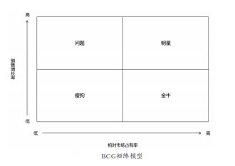 BCG矩阵将企业的产品或服务划分为4个象限:明星、问题、金牛和瘦狗(见下图)。