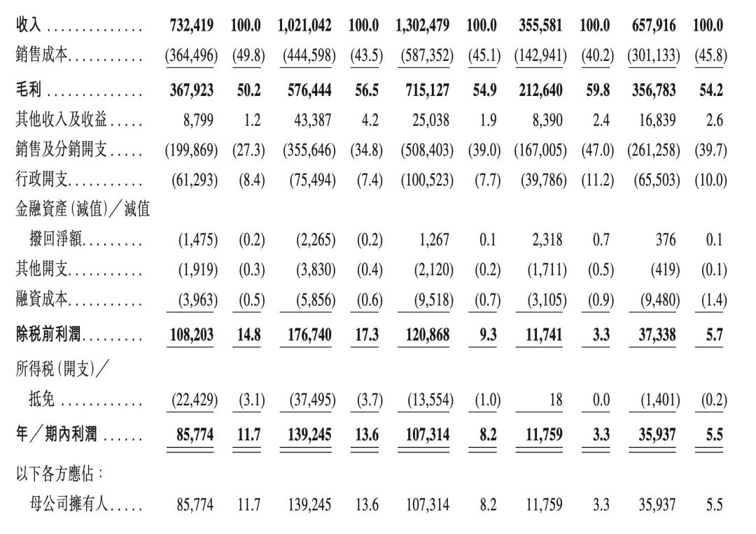 伯希和之后,又一户外品牌即将叩响港股IPO大门。10月8日,国内知名户外服饰品牌坦博尔集团股份有限公司(以下简称“坦博尔”)正式向中国香港联交所提交上市申请,此次IPO由中金公司担任独家保荐人。根据灼识咨询资料,以2024年零售额计,坦博尔是中国第四大本土专业户外服饰品牌。01营收增长,隐忧浮现根据招股书显示,坦博尔交出了一份漂亮的成绩单。从营收和净利润数据上来看:从2022年到2024年,坦博尔营收分别为7.32亿元、10.21亿元及13.02亿元,净利润则分别为8577万元、1.39亿元及1.07亿元。2025年上半年,坦博尔实现营收达6.58亿元,同比增长85%,净利润则为3594万元,而2024年上半年净利润为1176万元,同比增长206%。2022年至2024年及2025年上半年,坦博尔净利率分别为11.7%、13.6%、8.2%和5.5%。