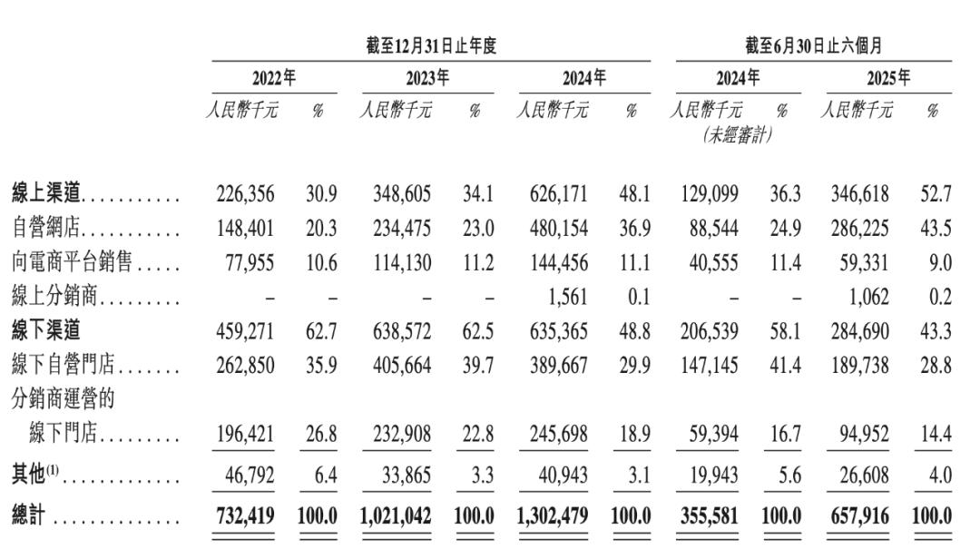 这或许得益于坦博尔将资源向线上平台倾斜。2024年,坦博尔终止与83家线下分销商的合作,重点清退低线城市低效网点,同时将资源向天猫、抖音等电商平台倾斜。截至2025年6月30日,坦博尔在中国不同地区设有568家常设线下门店,其中包含257间线下自营门店及311间分销商运营的门店,及100家在线自营店铺。