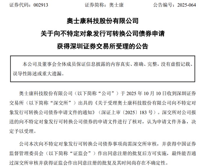 近日,奥士康科技股份有限公司(股票简称:奥士康,股票代码:002913)披露向不特定对象发行可转换公司债券并在主板上市募集说明书(申报稿),计划募资不超过 10 亿元,全额投向 “高端印制电路板项目”,聚焦高多层板及 HDI 板产能建设,以应对算力基础设施、人工智能终端及智能电动汽车等下游领域的快速增长需求。本次发行由华泰联合证券担任保荐人(主承销商),债券信用评级为 AA 级,公司主体信用评级同为 AA 级,评级展望稳定。