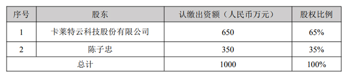 此次合资公司注册资本为 1000 万元人民币,其中卡莱特以自有资金出资 650 万元,占注册资本的 65%,充分彰显其对该赛道的战略信心与资金实力;陈子忠博士以自有资金出资 350 万元,占注册资本的 35%,其技术背景为合资公司的研发突破提供核心支撑。