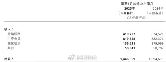 曾被寄予厚望的职业培训业务同样表现不佳,收入骤降43.87%至1.57亿元,官方解释为“战略优化调整所致”。