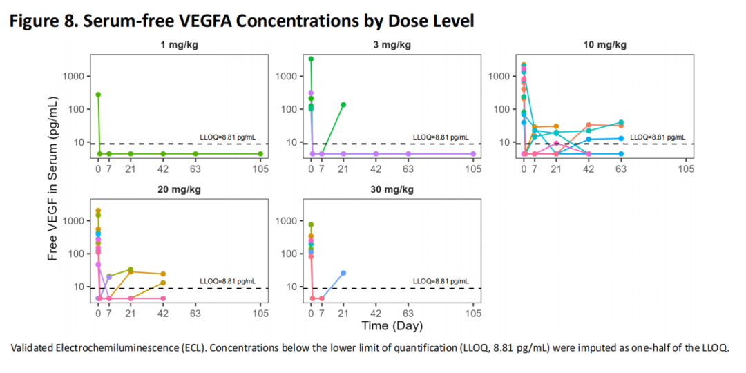 3)无血清血管内皮生长因子A(VEGF-A)浓度持续降低,证明CS2009能够快速、深度、持久地实现VEGF-A中和