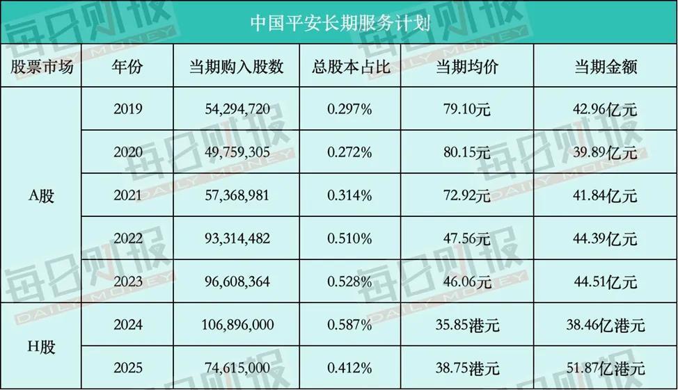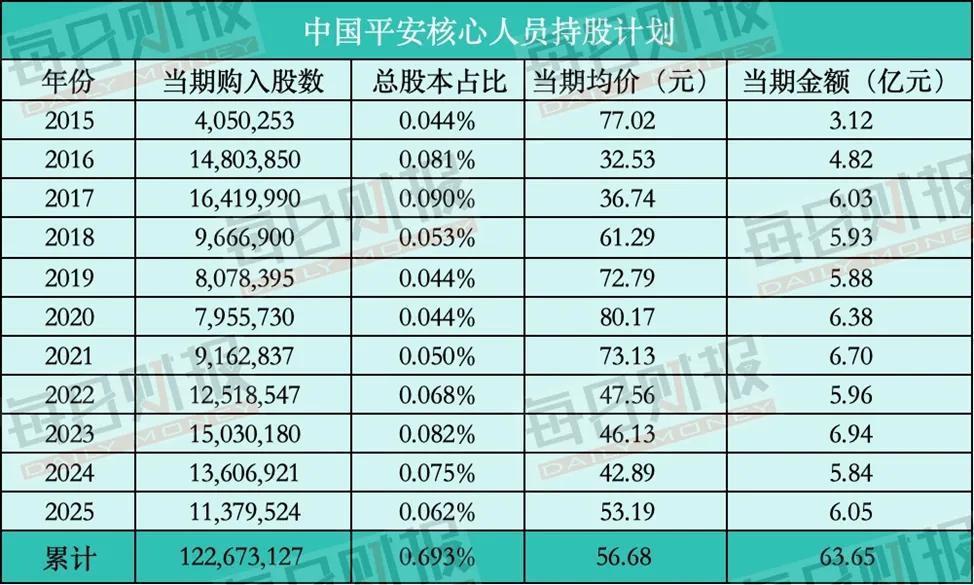 截至目前,参与2025年度核心人员持股计划的人员共2263人,而参与长期服务计划的人员共83024人,后者是前者的近37倍。另据统计,中国平安自推出“长期服务持股计划”7年以来,中国平安已累计有48.68万人次参与其中,累计参与资金总额近288亿元,共购得A股3.51亿股、H股1.82亿股。