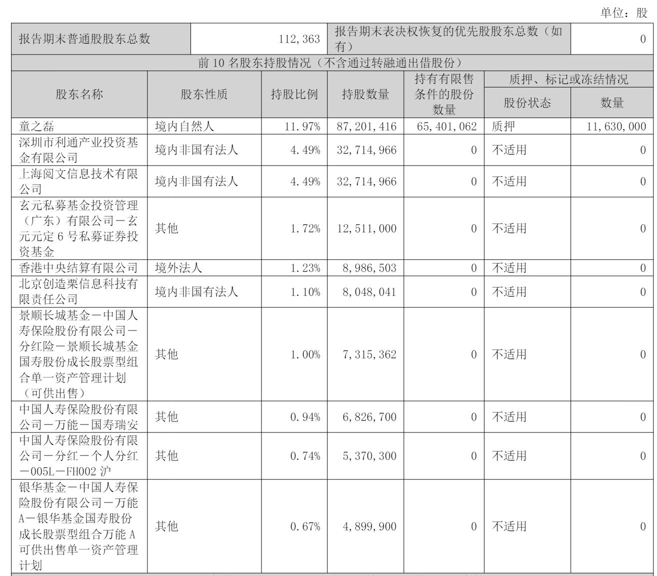 截至2025年9月30日,中文在线实控人童之磊持股为11.97%,深圳市利通产业投资基金有限公司持股为4.49%,上海阅文信息技术有限公司持股为4.49%,玄元私募基金投资管理(广东)有限公司-玄元元定6号私募证券投资基金持股为1.72%;