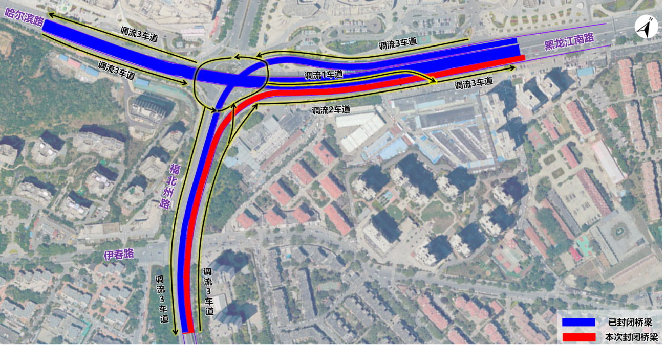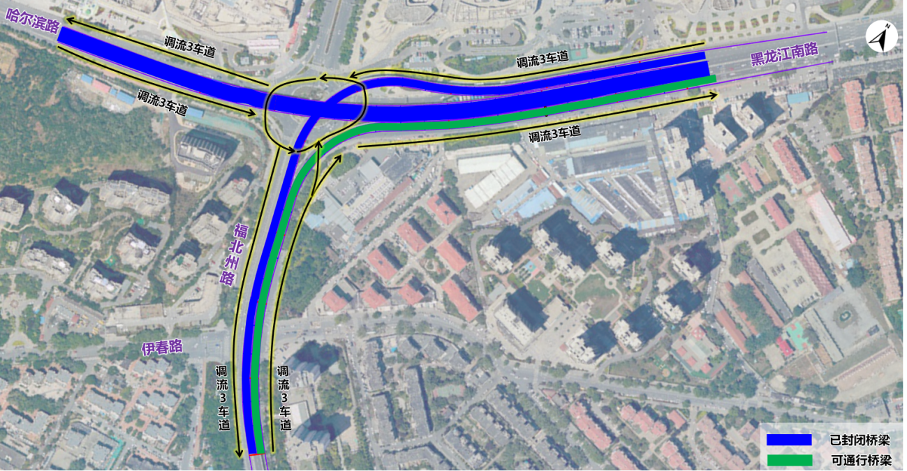 一、2025年10月25日起,在华仁立交桥黑龙江路左转福州路匝道桥、哈尔滨路-黑龙江路主线桥已封闭的基础上,福州路右转黑龙江路匝道桥梁继续保持正常通行。福州路-黑龙江路平面信控交叉口调整为信控环岛,地面辅路各方向直行,左转车辆均需通过环岛绕行。