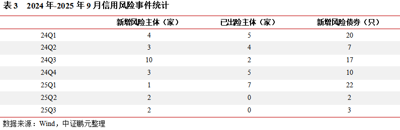 2025年三季度,债券市场风险事件同比继续减少,风险处置和防范依然是主旋律。具体来看: