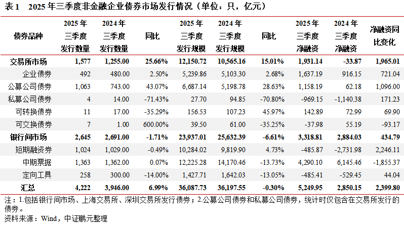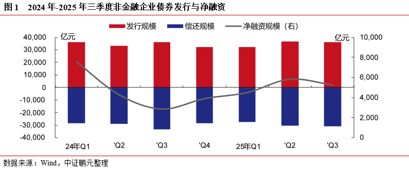 1. 2025年三季度信用债发行规模略下降,净融资同比下降约40%