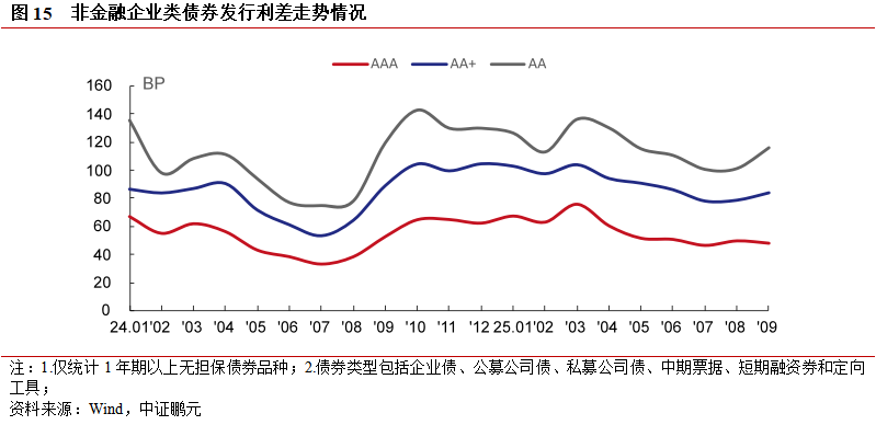 8. 三季度信用债信用债利差触底后走扩,AAA级发行利差整体平稳,AA+级和AA级利差走扩