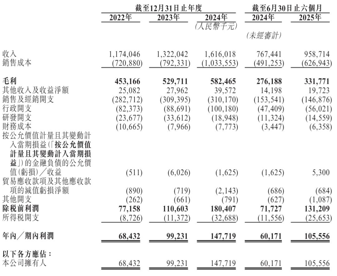 溜溜果园2025年上半年营收为9.59亿元,较上年同期的7.67亿元增长25%;毛利为3.32亿元,上年同期毛利为2.76亿元;期内利润为1.06亿元,上年同期的期内利润为6017万元。