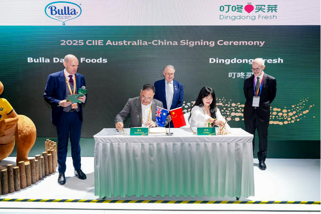 在食品与农产品展区,叮咚买菜与澳洲乳制品品牌Bulla签下500万元直采协议。明年起,更多原装酸奶和冰淇淋将通过其前置仓网络,最快半小时送到中国家庭餐桌。此外,叮咚买菜还和新西兰银蕨农场、上海天萃庭共同签订超1亿元的新西兰牛肉采购订单,瘦多肥少、整肉原切的新西兰小公牛直达消费者餐桌。