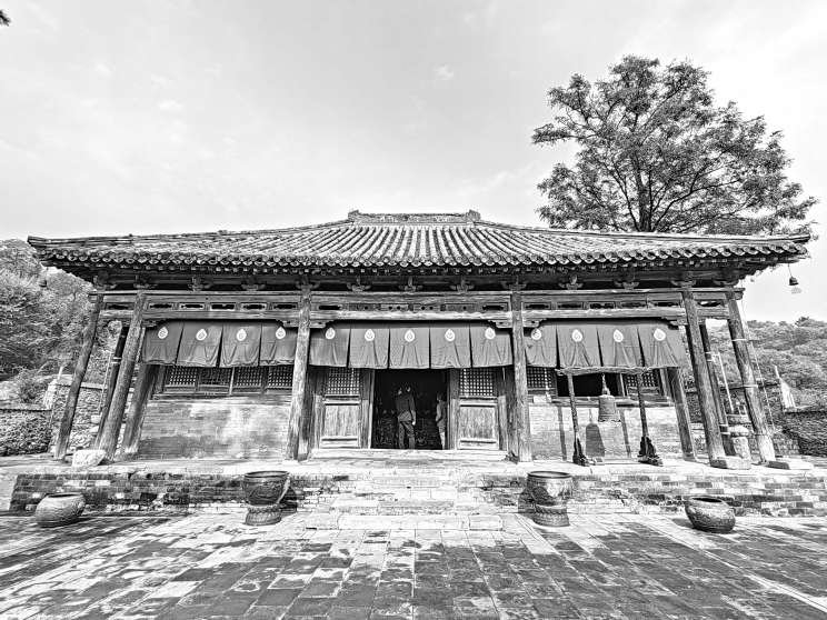 而后,这座深山古刹多次大修,并且留下了修缮印记。比如,唐代的绳纹砖、辽代的沟纹砖、元代的叉手、明代的彩绘、清代挑檐下的木柱等。作为年代久远、格局完整的木结构建筑,灵岳寺堪称中国古代建筑的“活化石”。