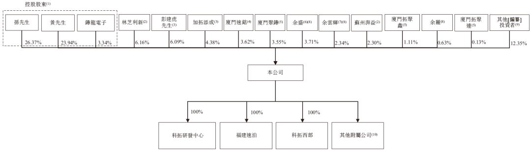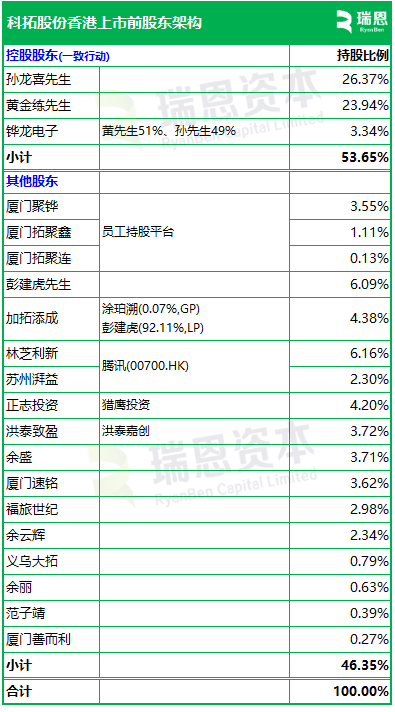 招股书显示,科拓股份在香港上市前的股东架构中,