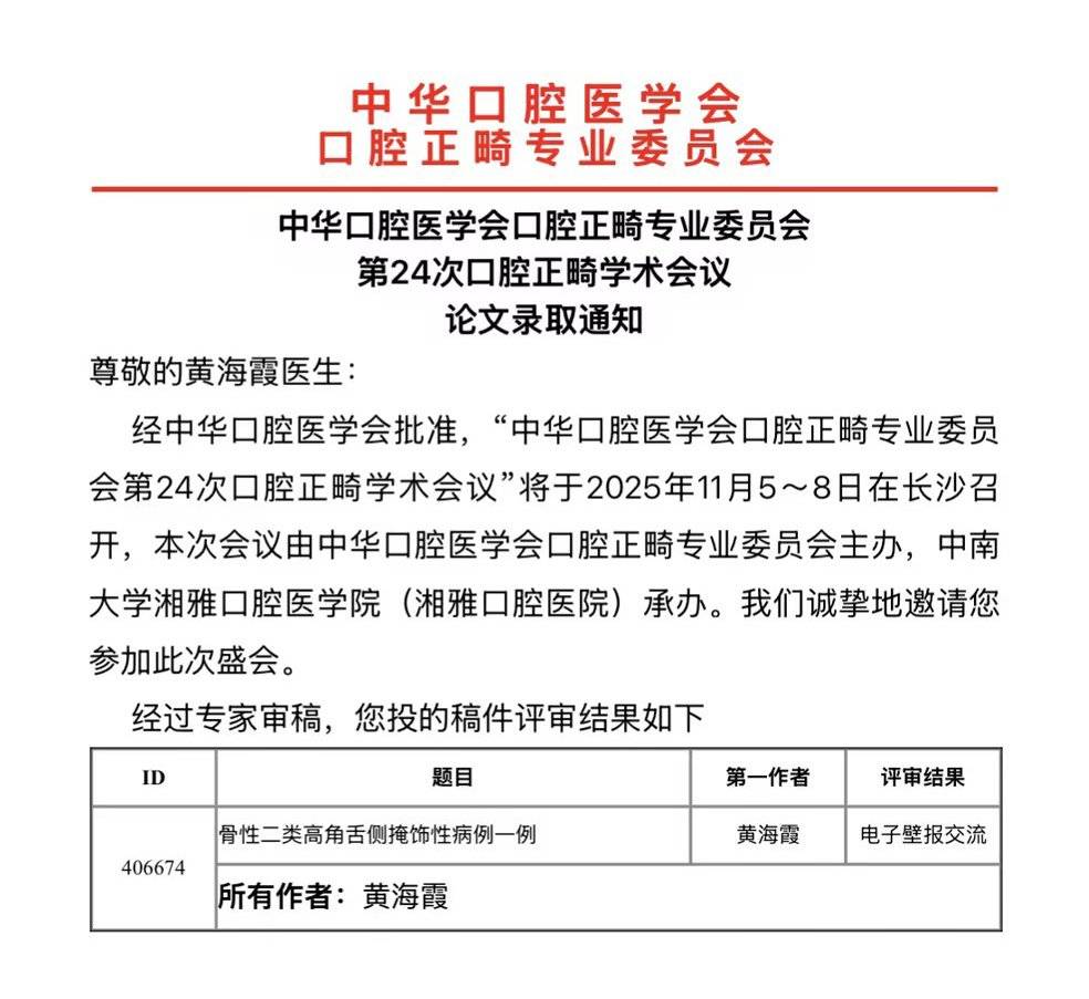 此次参会不仅是对两位专家临床诊疗水平与科研能力的高度肯定,更是广州穗华口腔正畸学科实力的集中体现。