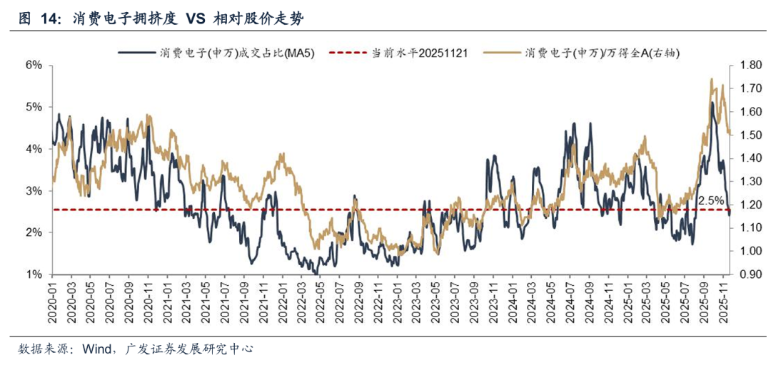消费电子成交占比降至最近一年34%分位数。