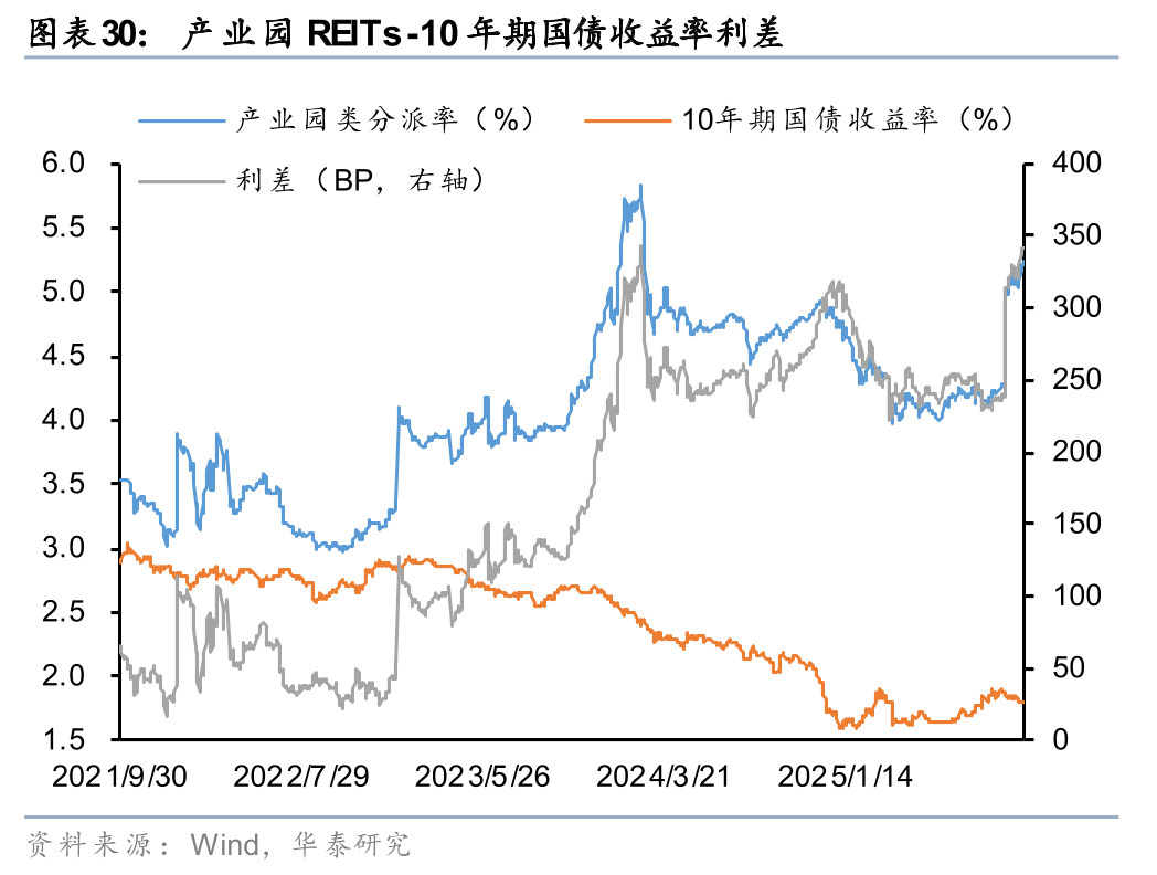 “固收+”类资金预计将继续关注REITs市场,因此REITs与债券资产的比价关系尤为重要。我们认为,稳健型资产的分派率与10年期国债之间的利差锚将进一步强化。然而,对基本面持续承压的品种需保持审慎,其二级市场波动可能加剧,建议聚焦具备个券Alpha的优质项目,如产业园板块中的高标准工业厂房、仓储物流中出租率接近满租、租金下滑幅度相对可控的项目。