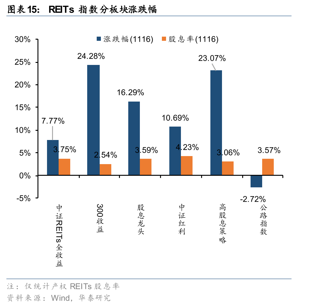 往后看,我们觉得板块间分化将持续,稳健资产价格跌出性价比后有望企稳,基本面走弱的资产仍承压,回归价值主线后,板块内部的分化也将增大,运管能力带来的业绩差异将进一步体现。