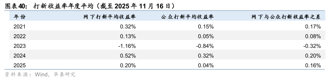 一二级间价差收窄,打新收益呈现收敛趋势,主要源于下半年二级价格回调、交易所估值压降幅度下降、询价区间上限打开、认购价格接近区间上限。尤其在近期上市的沈阳软件园REIT表现较为明显,上市首日盘中破发、次日破发,2025年11月11日华夏安博仓储REIT认购结束,公众投资者部分配售比例为5.83%,网下投资者确认比例0.68%,公众认购比例显著高于25年平均水平,也反映出打新回归理性。打新应重点关注项目资质,一级定价过高压缩了二级空间,打新并不是绝对行之有效的策略,对于基本面较弱的项目应保持谨慎。