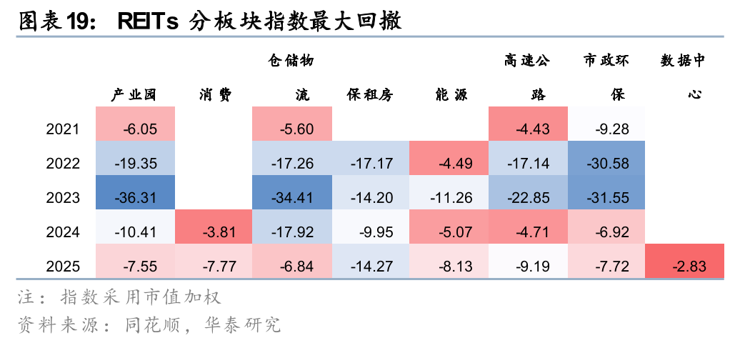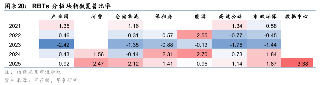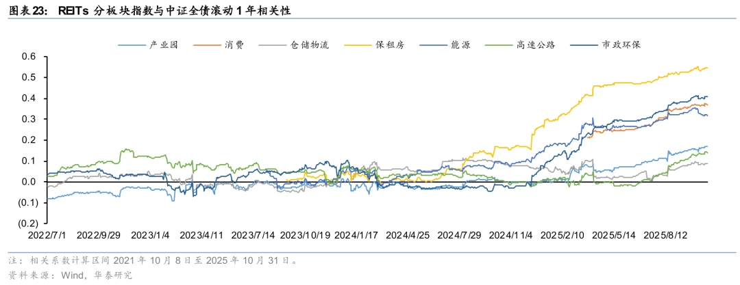 基本面稳健的资产债性更强。分资产类型来看,能源和高速公路波动率小于其他资产,或与其计入OCI账户交易较少有关。消费、保租房、市政环保类稳健资产在过去两年表现出更好的夏普比率,价格表现与基本面息息相关。从相关性视角而言,保租房、市政环保、消费与债券的相关性较高,基本面稳健的资产表现出了更强的债性。