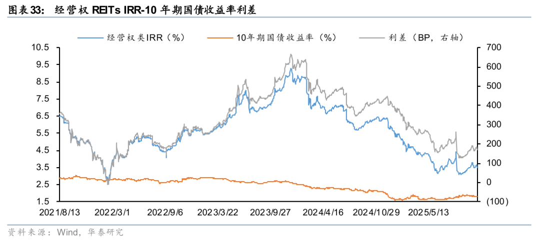 明年资金“由债入股”效应或进一步凸显,REITs相对于权益资产的吸引力可能下降。从股债对比的角度而言,若明年股市继续上演趋势性机会,资产荒逻辑趋于弱化以及9月初公募基金费率新规征求意见稿的出台,进一步导致债市担忧情绪升温,资金“由债入股”效应或进一步凸显,加剧债市资金分流压力,REITs作为类固收增强资产相对于权益资产的吸引力可能下降。