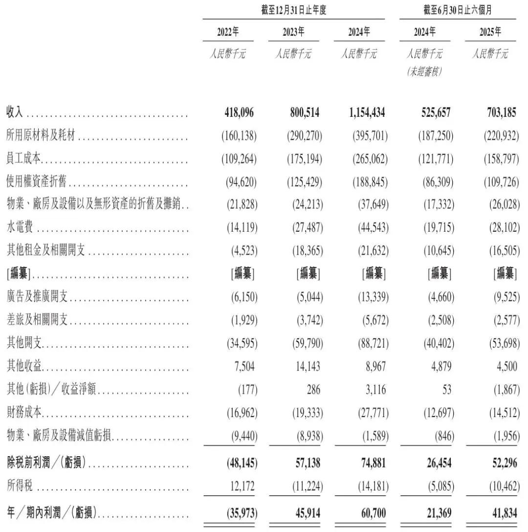 招股书显示,遇见小面2022年、2023年、2024年营收分别为4.18亿元、8亿元、11.54亿元;年内利润分别为-3597万元、4591万元、6070万元。