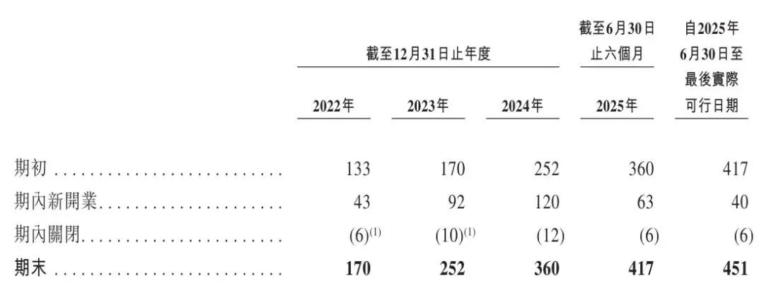 截至2025年6月30日,遇见小面餐厅数量有451家。