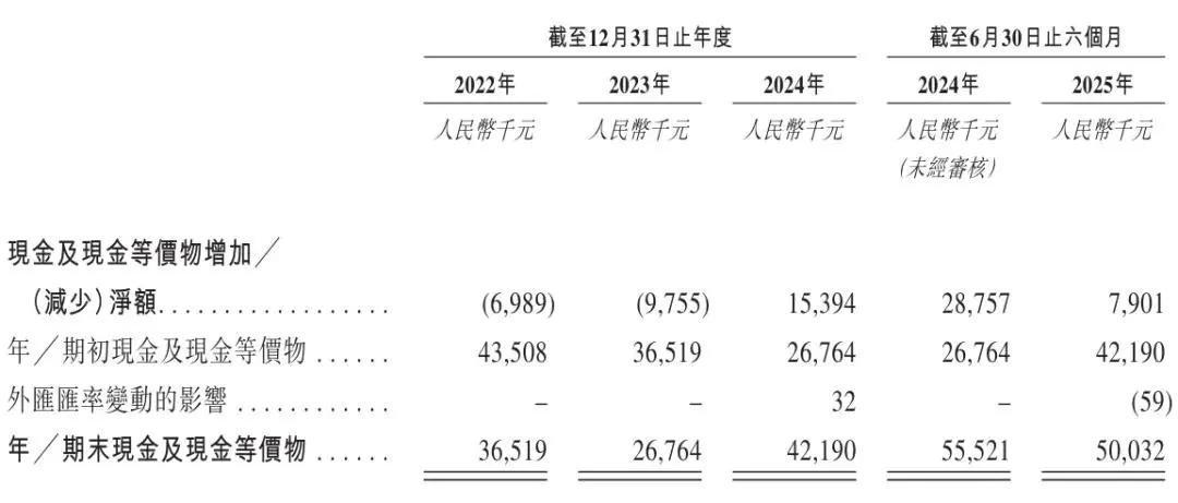截至2025年6月30日,遇见小面持有的现金及现金等价物为5003万元。