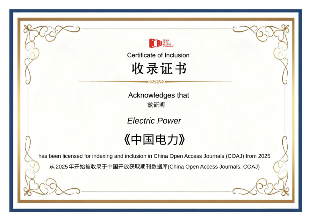 经过中国开放获取期刊(China Open Access Journals, COAJ)数据库的严格考查与评估,《中国电力》于2025年被COAJ数据库收录(https://www.coaj.cn/issn/1004-9649)。