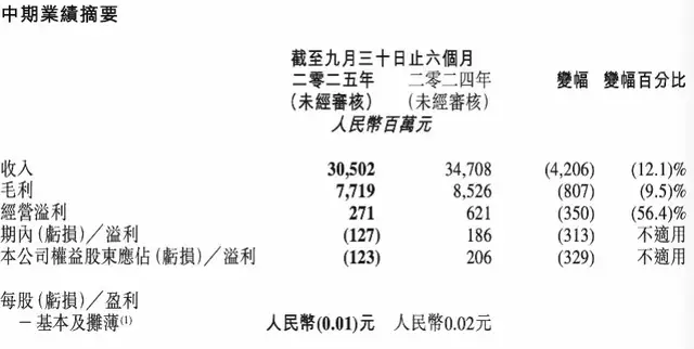4-9月,其收入约305亿元,其中,核心卖货收入290.81亿元,减幅达到12.4%,平均客单价、同店销售下跌,半年亏掉1.23亿元。