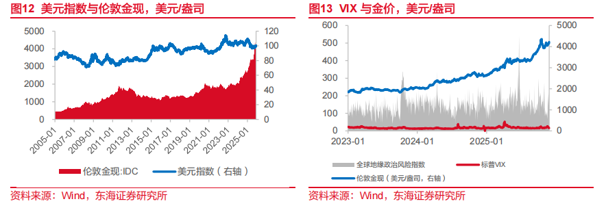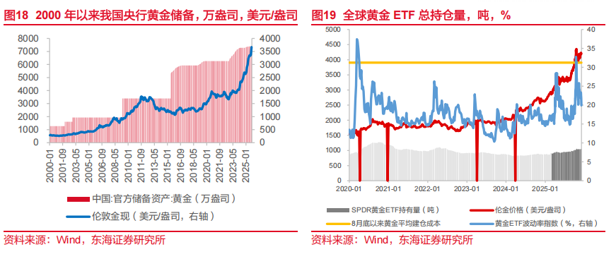 周内金价冲高回落,预计美联储即将降息。截至2025年12月5日当周,金价冲高回落,未能突破前高,伦敦金现收于4197.41美元/盎司,较上周同期下跌0.5%。美股三大指数周内延续震荡反弹,美元指数于周五再次跌破99点。10月我国央行继续增持黄金储备3万盎司。美国9月核心PCE物价指数同比上涨2.8%,环比上涨0.2%,基本符合市场预期,11月“小非农”减少3.2万个工作岗位,远低于市场预期。市场预期美联储年内仍将降息一次,押注12月将降息25个基点。SPDR持有量较上周末有所反弹,政策面上中日矛盾、美国贸易协定、俄乌冲突等仍存在较大不确定性。长期来看,美元及美债的避险属性被削弱,黄金避险需求凸显,美元长期贬值预期较强,黄金长期上涨逻辑坚挺。