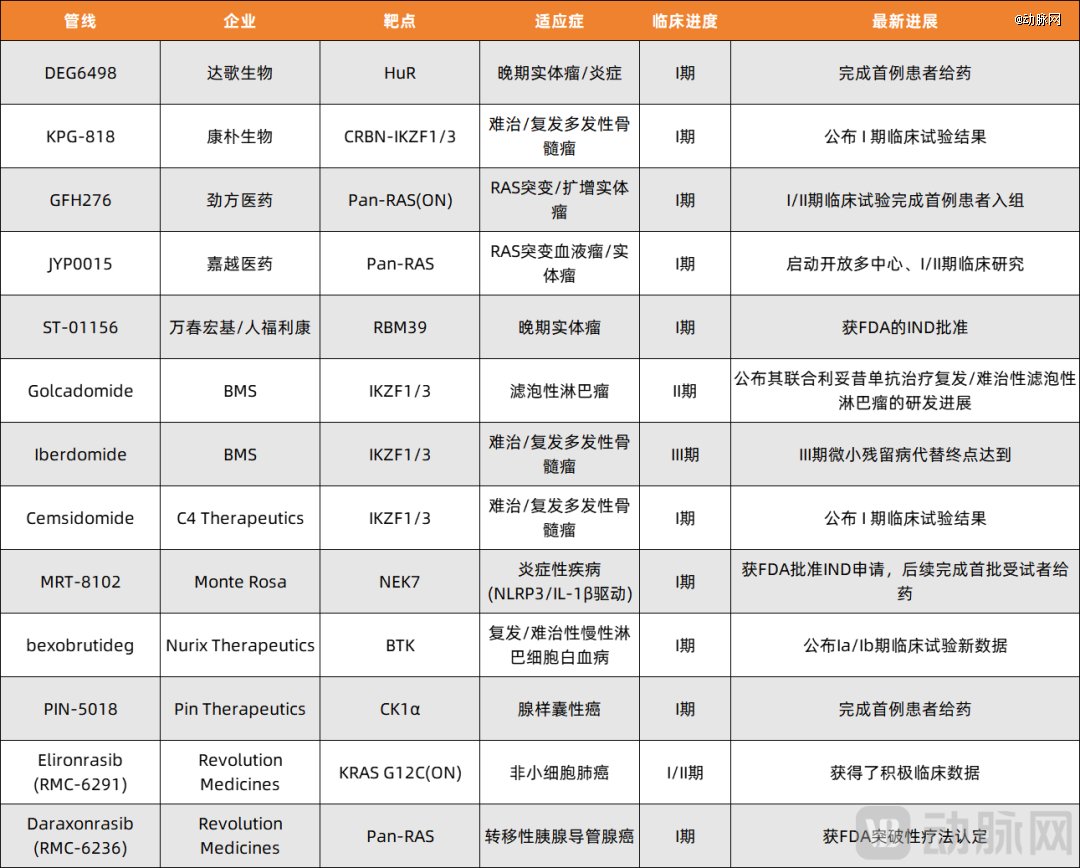 动脉网不完全统计,2025年在临床领域取得进展的分子胶管线