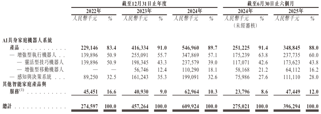 招股书显示,在过去的2022年、2023年、2024年和2025年前六个月,卧安机器人的营业收入分别为人民币2.75亿、4.57亿、6.10亿和3.96亿元,相应的净利润分别为人民币-8,698.3万、-1,637.6万、-307.4万和2,790.3万元,相应的经调整净利润分别为人民币-8,360.5万、-1,219.5万、110.7万和4,420.5万元。