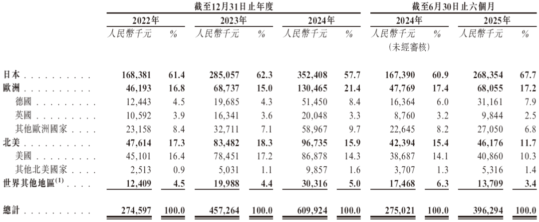 卧安机器人的产品组合涵盖SwitchBot品牌下涉及47个SPU的七种品类,通过广泛的全渠道销售及分销网络销售产品,涵盖通过电商平台及公司自营网站的DTC渠道、零售商渠道(包括Amazon等主要国际零售商)及分销渠道。卧安机器人的产品销往全球逾90个国家及地区,其中日本及欧洲地区为公司的主要市场,产品于世界各地逾2,000间线下零售店可供购买。