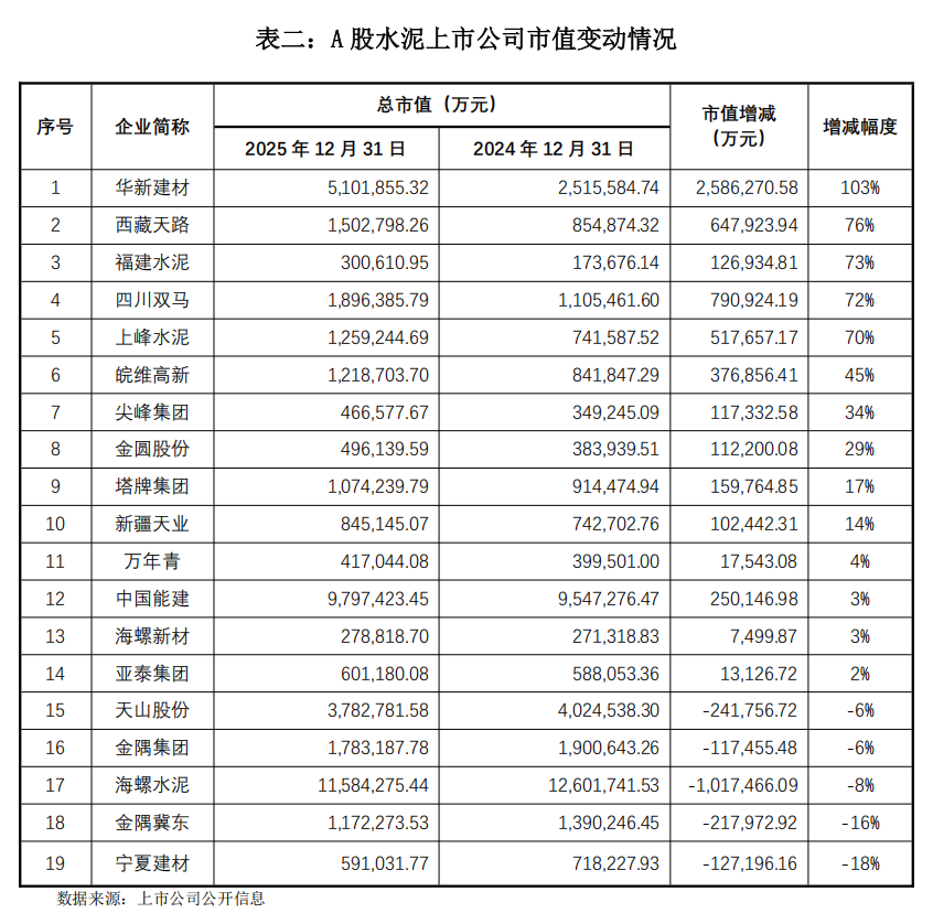 本文基于2024年12月31日至2025年12月31日的市值数据,结合年度行业政策、产能置换实践、企业海外布局进展,以及2026年即将落地的政策新规,解析市值变动规律及核心驱动逻辑,为行业观察与投资决策提供参考。