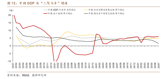 传统的“三驾马车”——消费、投资和出口,固然是观察经济运行的重要切口,但它们只能揭示中国经济表层的一部分动态。我们认为,仅仅依靠这三项指标,很难全面解释近年来中国经济在逆风环境下依然保持增长的原因。事实上,中国经济的“韧性”更多体现在供给端和结构层面的深刻变化。产业升级、技术进步、绿色转型和新兴产业的崛起,正在为经济注入持续的活力。这种供给侧的调整与优化,使得经济能够在外部需求波动和传统动力减弱的情况下,依然展现出较强的稳定性与适应性。
