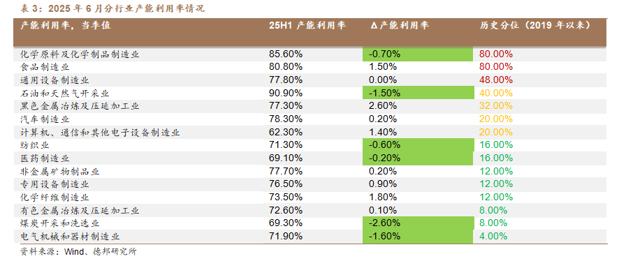 2)多行业产能利用率仍处低位:从产能利用率的历史分位数水平来看,电气机械和器材制造业、煤炭开采和洗选业、有色金属冶炼及压延加工业和化学纤维制造业的产能利用率处于2019年以来的较低水平。从产能利用率的修复来看,黑色金属冶炼及压延加工业、化学纤维制造业和食品制造业的产能利用率在修复,而煤炭开采和洗选业、电气机械和器材制造业和石油和天然气开采业行业产能利用率仍在下行。