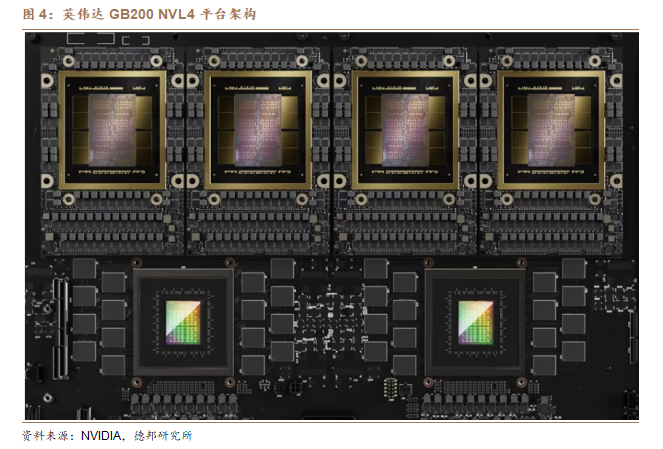 芯片方面,为了应对AI技术对算力的需求,海外龙头公司持续推出新品。在2024年美国超级计算大会上,英伟达发布了两款全新硬件产品:GB200 NVL4超级芯片和H200 NVL PCIe GPU,在高性能计算和人工智能领域进一步布局与创新,其中GB200 NVL4将四个Blackwell GPU和两个Grace CPU集成在一个系统中,专为HPC和AI混合工作负载而设计,性能较前代产品有显著提升。同时,算力对于AI服务器的需求也持续提高整个产业链的景气度,国内电子代工、PCB等公司也均充分受益。