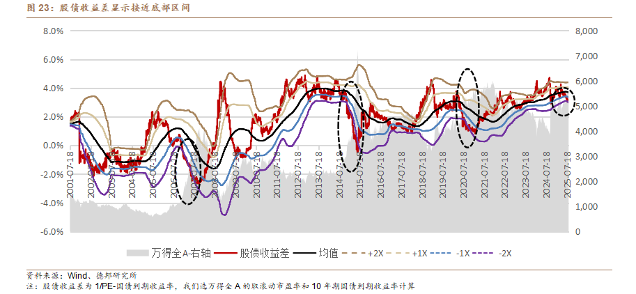 实际上,资产性价比的转移才是核心推力。2024年9月至今,上证指数上涨超40%,而同期1年期银行存款利率仅1.5%、3年期国债收益率在1.4%-1.6%区间震荡,权益资产与低风险资产的“收益差”持续走扩,形成强大资金引力场。2000年以来的规律显示,该指标触及负两倍标准差后,股市往往有不错的表现。股债“跷跷板”效应下,存款利率持续下行有望推动居民资产重配,存款利率下降的大背景下,资金有望从债基、货基流向权益市场。