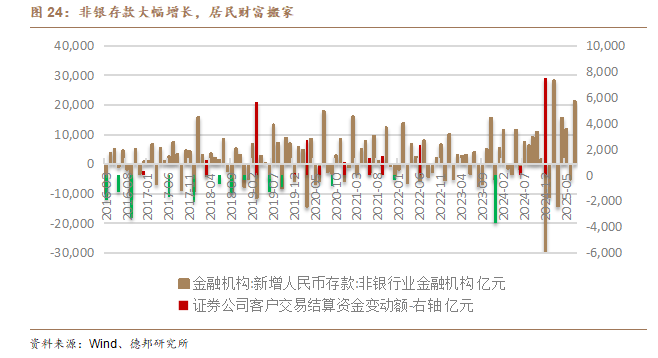 风险三:居民资产配置转移节奏放缓。存款搬家的持续推进依赖利差优势、风险资产赚钱效应以及其他资产吸引力变化等因素。若未来利差收窄、房地产等传统资产吸引力边际回升,或股市赚钱效应减弱导致居民风险偏好下降,可能引发资金从资本市场回流储蓄或其他领域,使得存款搬家节奏超预期放缓,削弱市场增量资金支撑力。