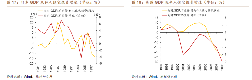 过去几轮经济周期中,房地产被认为是拉动中国经济增长的核心引擎,但当前行业调整的幅度与深度,已经使得其对整体经济的带动力显著减弱。从国际经验来看,在发达国家曾经经历过的地产下行期中,住宅投资下行和GDP下行也较为同步。自2021年以来,中国房地产投资完成额年度值下滑32%,商品房销售额年度值下滑47%。按传统逻辑,房地产作为经济大头,其下滑本应拖累整体经济,然而当前我国GDP增速依然保持在5%左右。