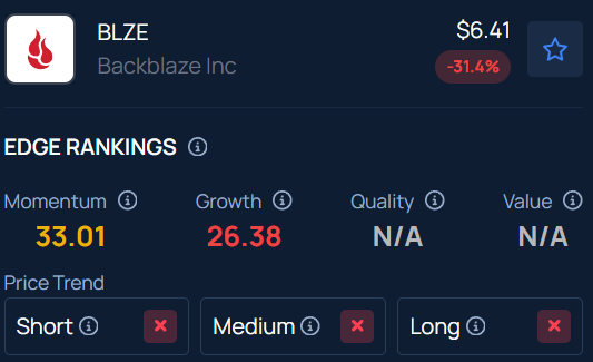 Benzinga Edge Stock Rankings indicate that BLZE has a negative price trend across all time frames. Here is how the stock fares on other parameters.