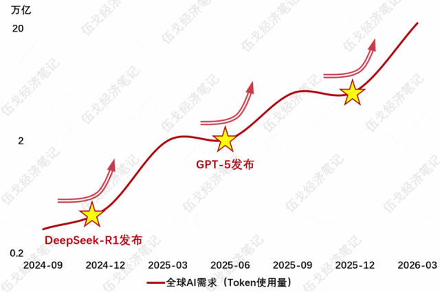 尽管各界对于AI科技估值是否存在泡沫,以及其对未来就业是否产生挤出效应存在广泛争议,但当今对算力、Token等需求还停不下来,甚至有非线性增长的趋势。这与本轮科技发展的特性有关,也夹杂大国博弈、科技竞争等复杂内涵。